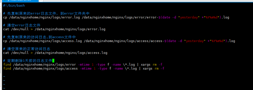 Nginx中主要清理access.log和error.log两个自增日志文件。由于nginx没有自动按日期分割日志,所以需要手动先分割,然后按删除前n天的日志文件。