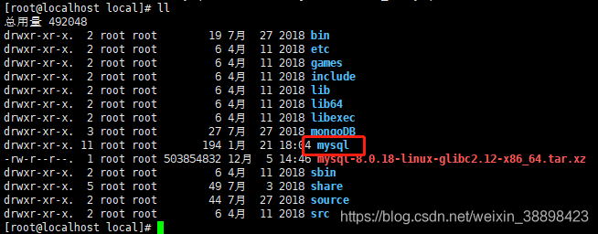 [root@localhost local]# tar -xvf mysql-8.0.18-linux-glibc2.12-x86_64.tar.xz