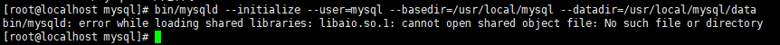 [root@localhost mysql]# bin/mysqld --initialize --user=mysql --basedir=/usr/local/mysql --datadir=/usr/local/mysql/data --lower-case-table-names=1