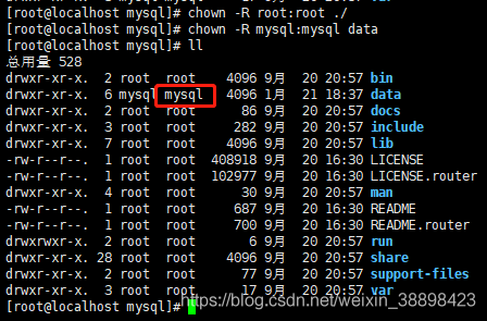 [root@localhost mysql]# chown -R mysql:mysql data