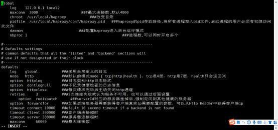 pidfile /usr/local/haproxy/conf/haproxy.pid ###haproxy的pid存放路径,将所有进程写入pid文件,启动进程的用户必须有权限访问此文件