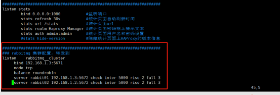 server rabbit01 192.168.1.3:5672 check inter 5000 rise 2 fall 3