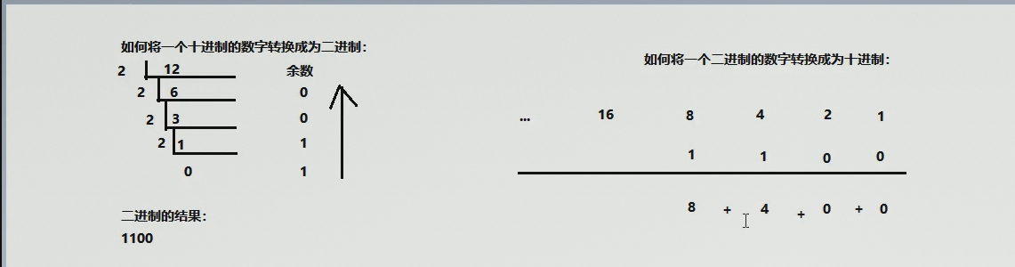 - 使用相除余法数(十转二)/位权换算(二转十)