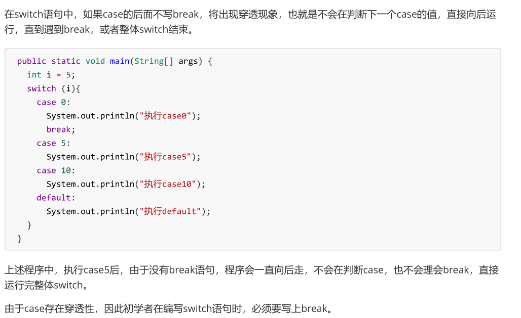 - break:终止switch或者循环。