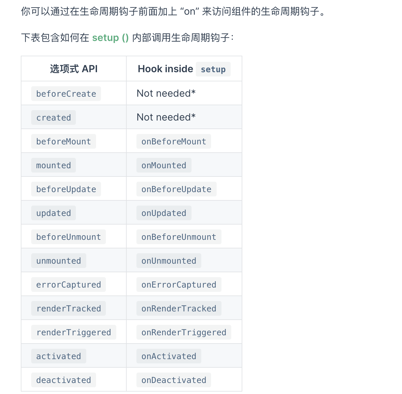 在setup中没有生命周期函数,没有计算属性等等特性,取而代之的都是composition api。