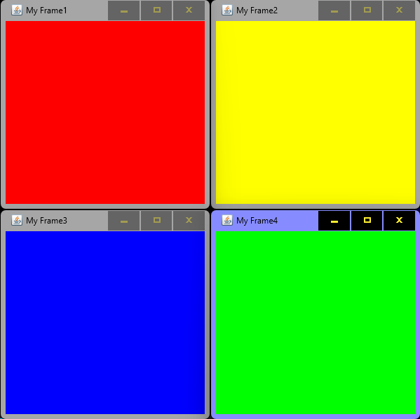 MyFrame myFrame4 = new MyFrame(400, 400, 300, 300, Color.green);