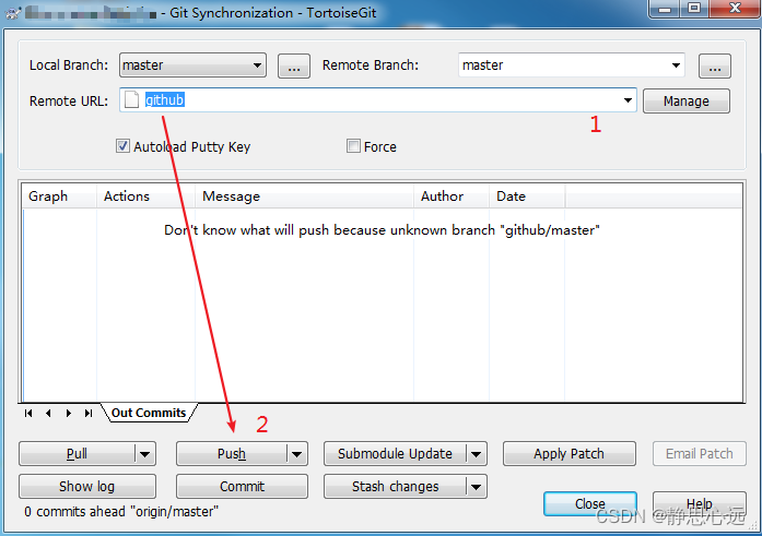 Remote URL 选则刚刚添加的 gitHub,然后 Push。