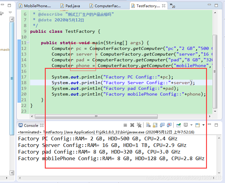 getComputer 是工厂类的方法,且基于相同的参数类型返回了不同的对象;