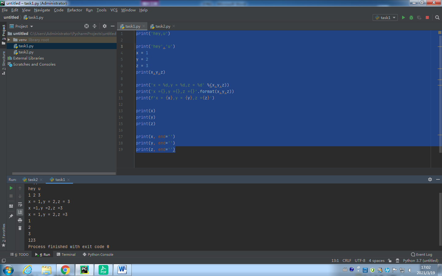 print(f'x = {x},y = {y},z ={z}')