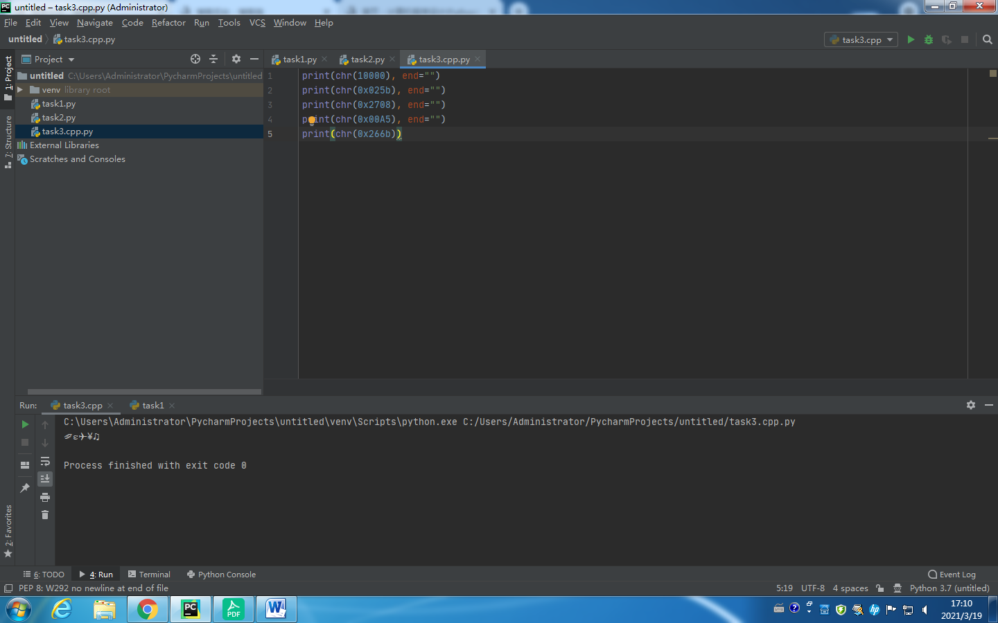 print(chr(10000), end="")