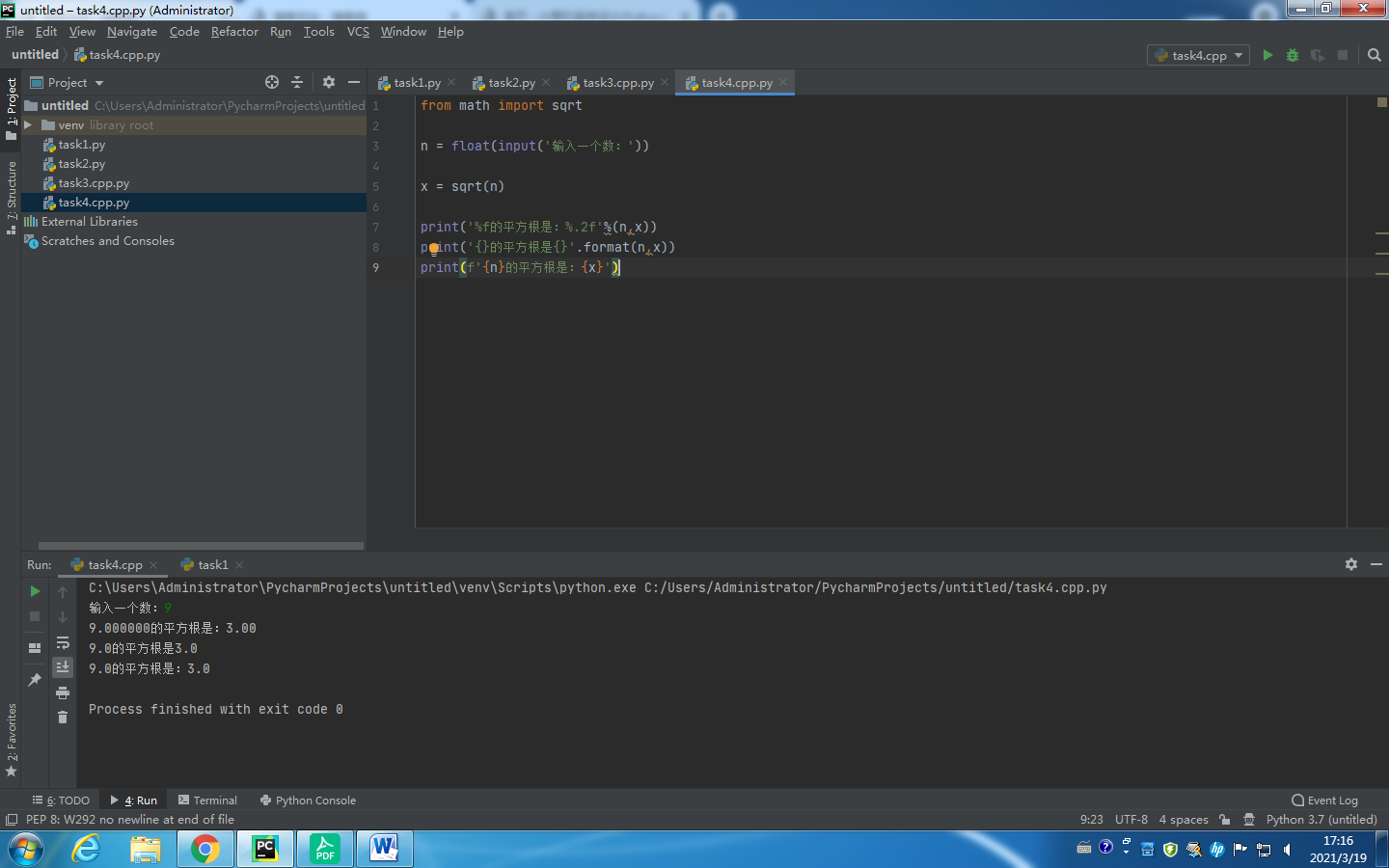 print(f'{n}的平方根是:{x}')
