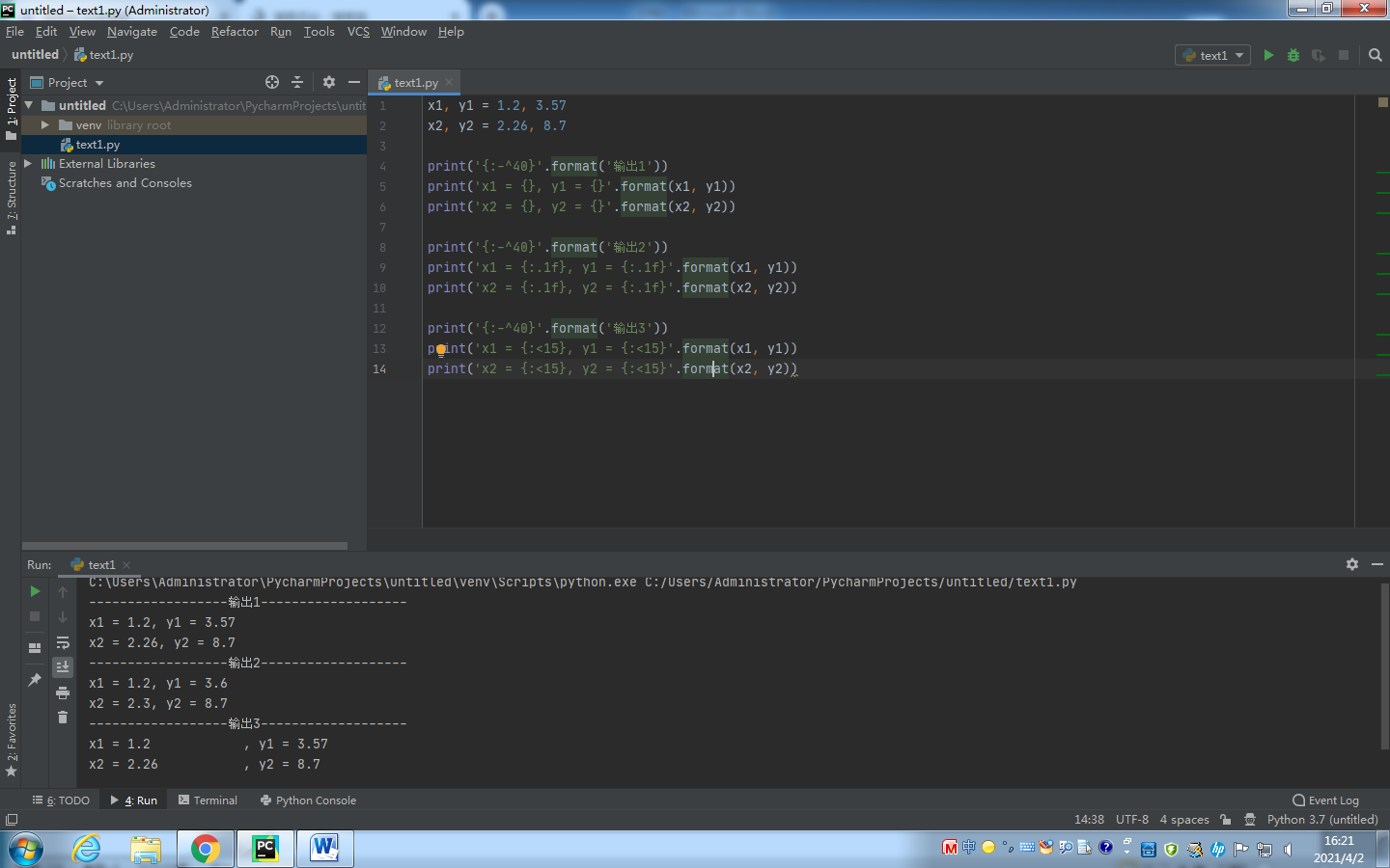 print('x1 = {:.1f}, y1 = {:.1f}'.format(x1, y1))