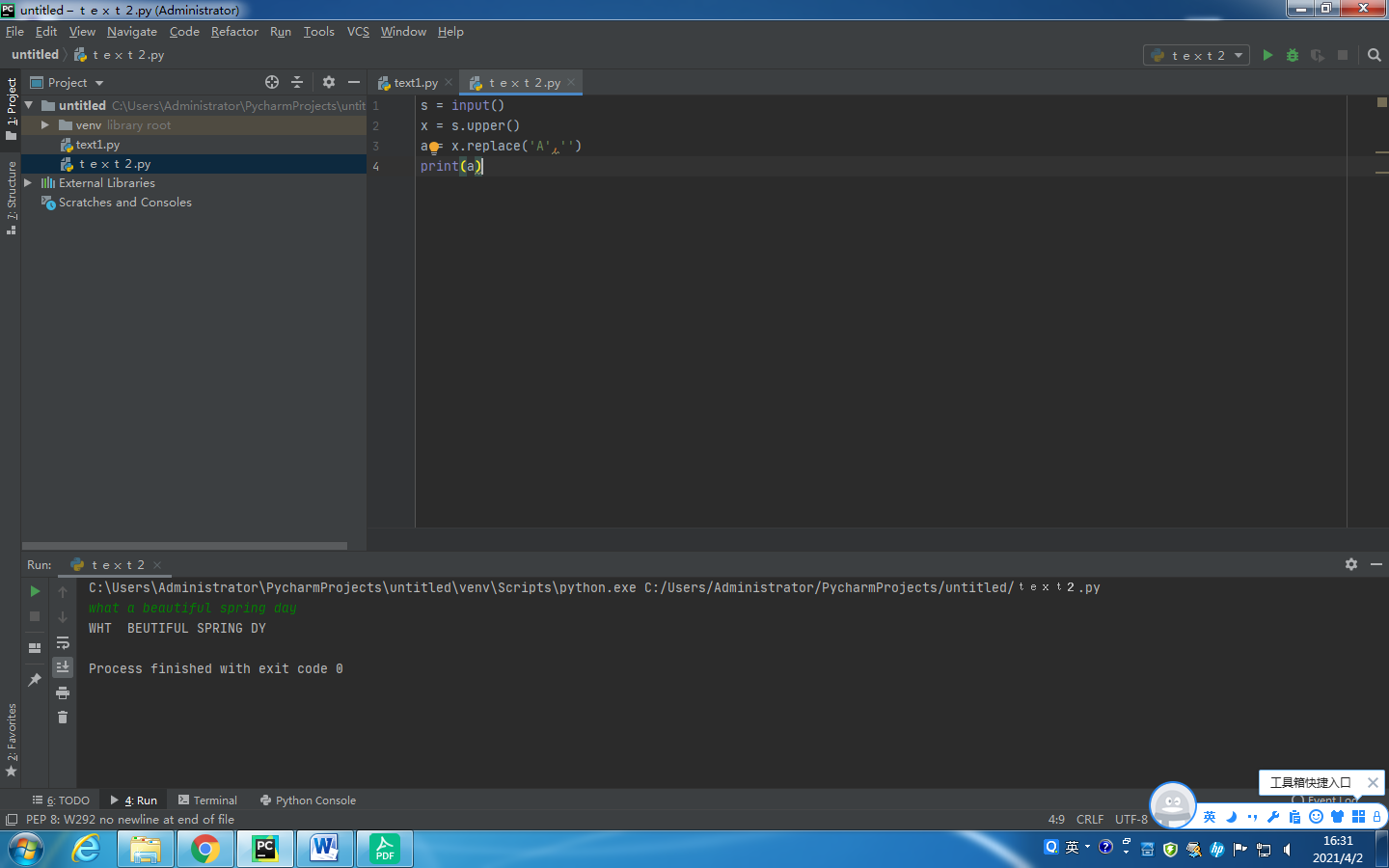 x = s.upper()