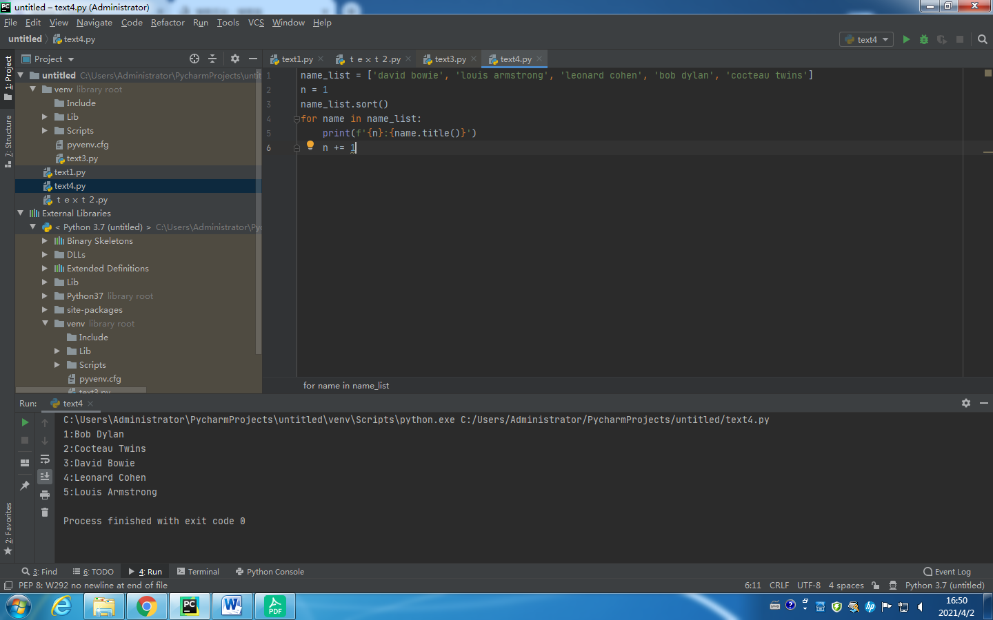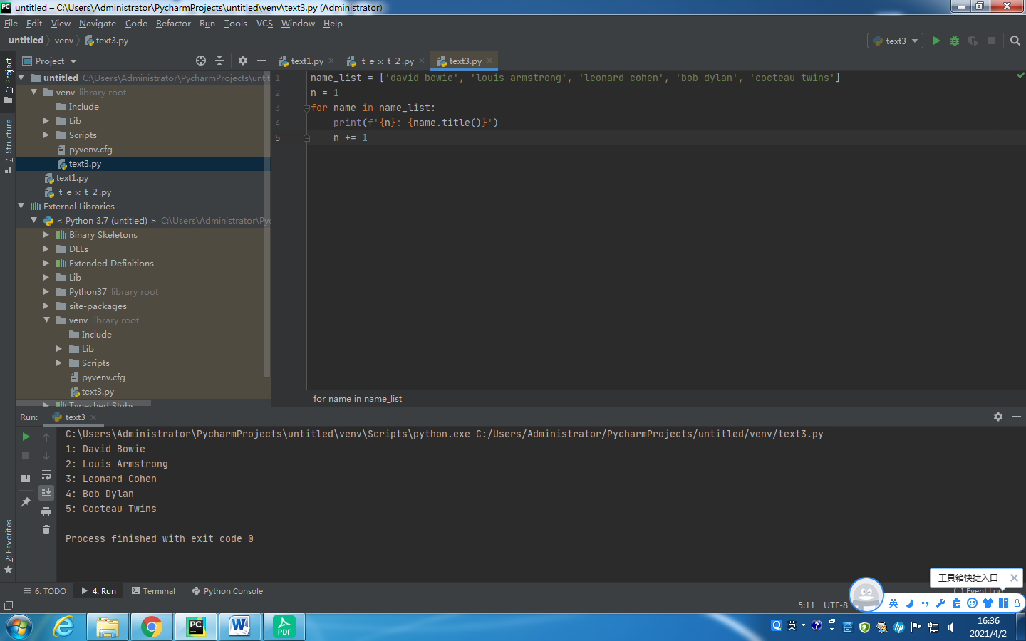 name_list = ['david bowie', 'louis armstrong', 'leonard cohen', 'bob dylan', 'cocteau twins']