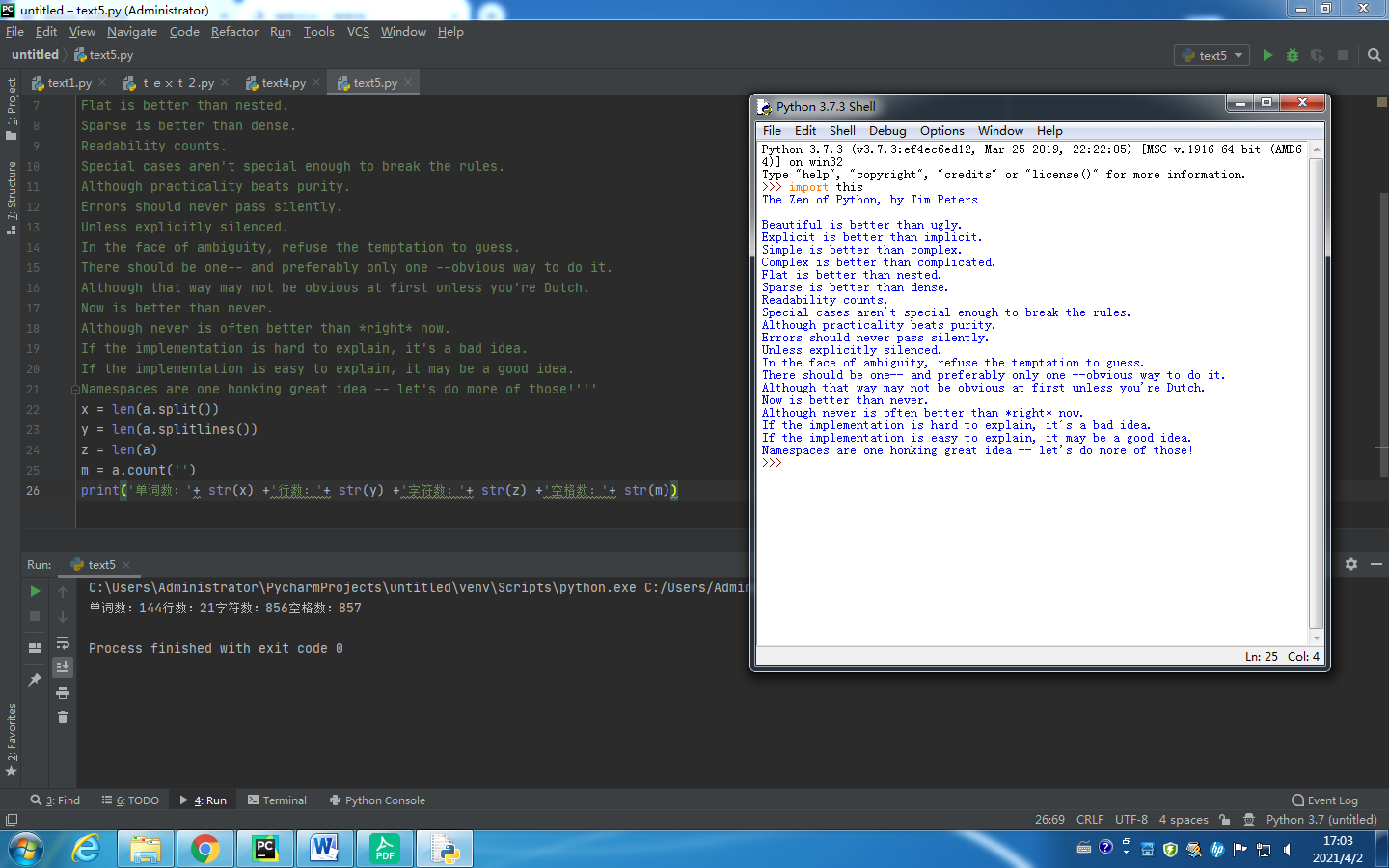 print('单词数:'+ str(x) +'行数:'+ str(y) +'字符数:'+ str(z) +'空格数:'+ str(m))