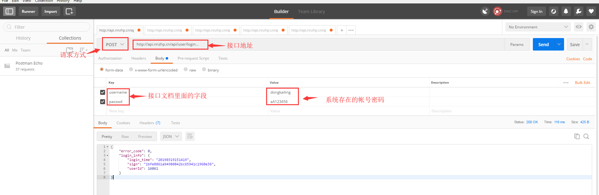 2、接口测试有两种请求方式,post和get,根据接口文档,选择post还是get,比如登录
