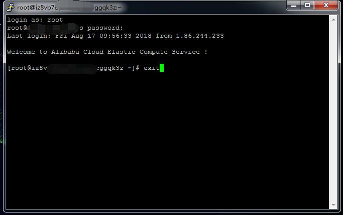 第三步:登录成功后,我们就能看到熟悉的linux界面风格了。后面还可以设置很多,这里我们直接输入exit 关闭当前连接。