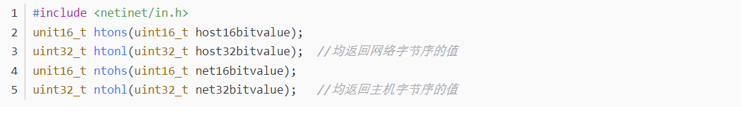 3、为了进行转换 bsd socket提供了转换的函数 有下面四个
