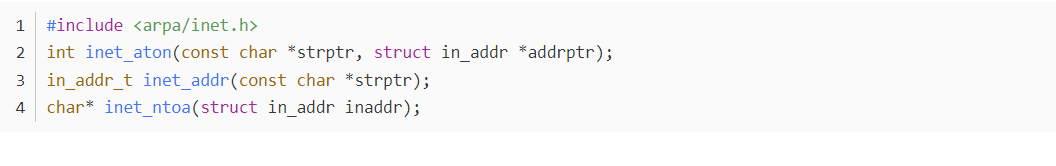 inet_aton将strptr所指c字符串转换成一个32位的网络字节序二进制值,并通过addrptr指针来存储。成功返回1,否则返回0.