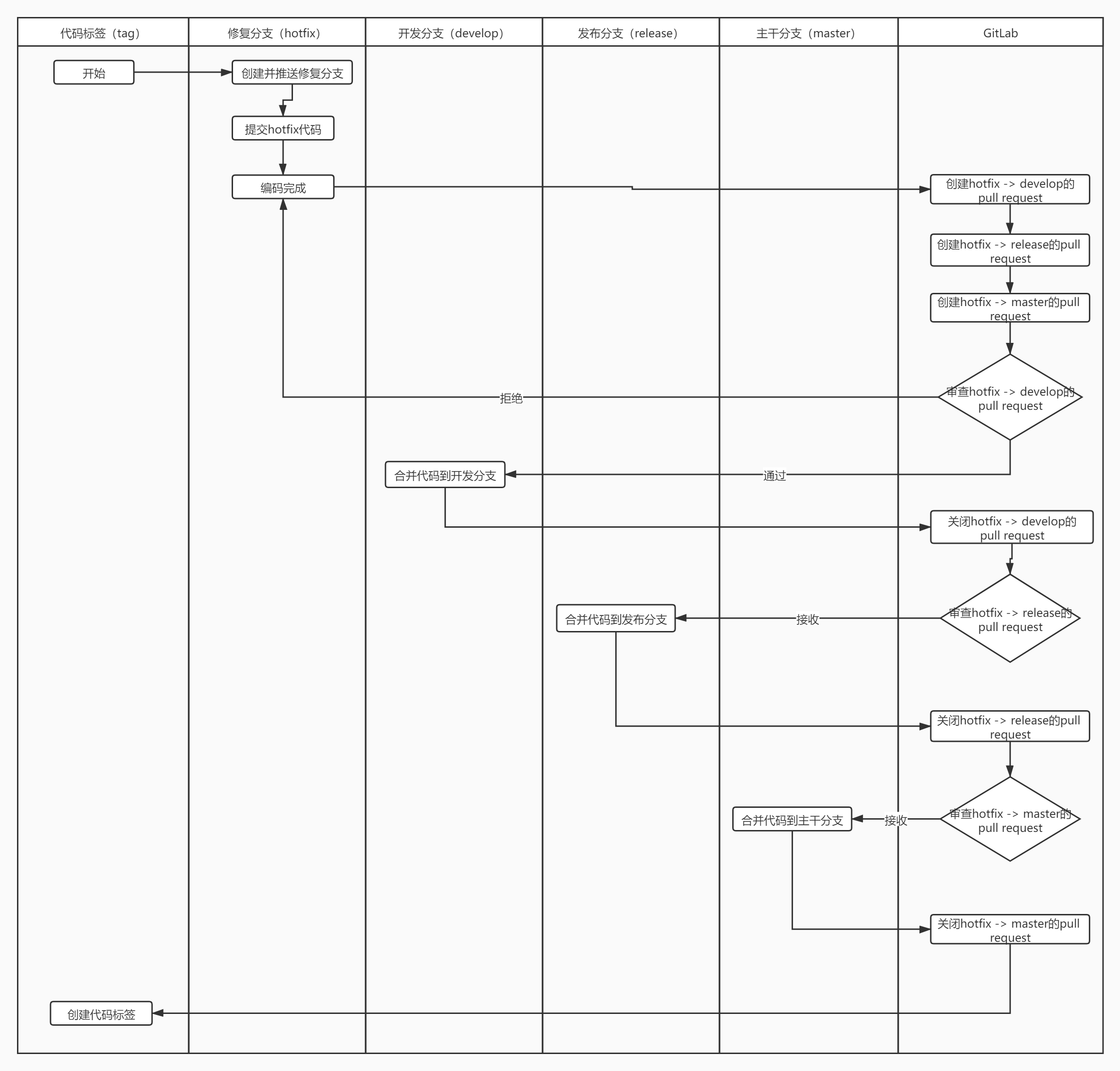 Master分支 :一定是最后一次 commit已经上线,或者 他已经顺利通过了 QA、PD、PO 的打磨锻造,分分钟拔出来上线。(ps:不用怕会祭天)