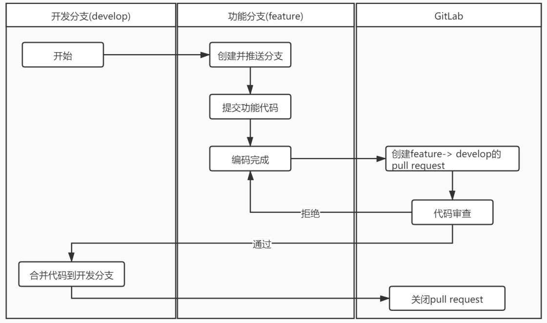 开发人员在 此分支上修改,开发和自测完后,向 code库发起pull request,请求代码审查和合并