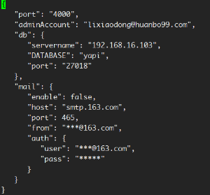 --进入目录 cd {install_path}/nodejs/lib/node_modules/yapi-cli/src/my-yapi --调整配置 vi ./config.json