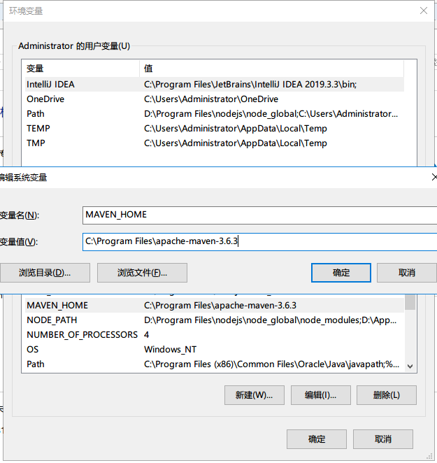 老规矩,新增一个 MAVEN_HOME 和 在 PATH 中追加 Maven的bin