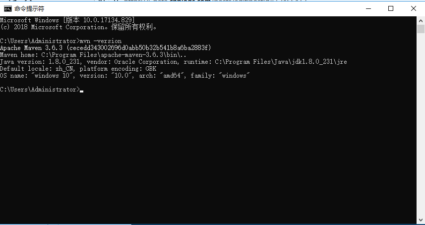 最后,测试一下是否配置成功(建议重启一下电脑,我就遇到了这个坑,检查了蛮多遍配置的),打开cmd窗口,输入 mvn -version,出现下图表示配置成功: