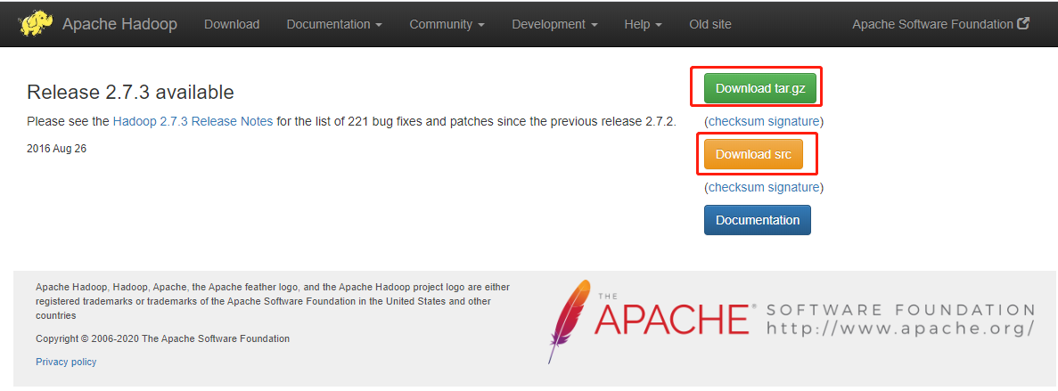 下载地址:https://hadoop.apache.org/release/2.7.3.html