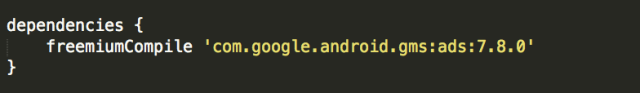 不同的依赖库可以按构建目标做定制,比如freemium的变种集成了广告,就可以这样写