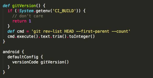 有时候,编译脚本中会有一些代码做动态信息的获取,比如想从git中获取一个数字作为版本号