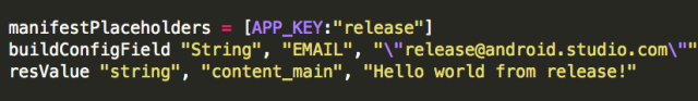 buildConfigField支持Java中基本数据类型,如果是字符串,记得加转义后的双引号