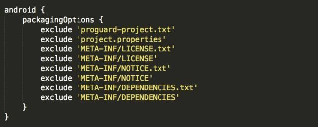 有时候引用的三方库会带有一些配置文件xxxx.properties,或者license信息,打包的时候想去掉这些信息,就可以这样做