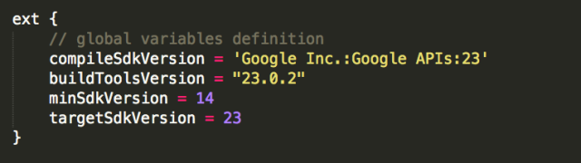 可以在顶层build.gradle脚本中定义一些全局变量,提供给子脚本引用