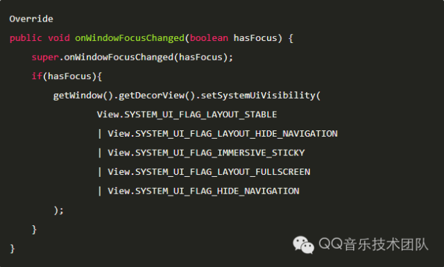 需要注意的是,这段代码除了需要加在Activity的OnCreate()方法中,也要加在重写的onWindowFocusChanged()方法中,在窗口获取焦点时再将Flag设置一遍,否则可能导致无法达到预想的效果。