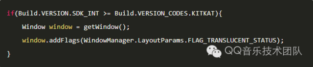 对于Android 4.4以上5.0以下的版本,设置透明状态栏的方式如下: