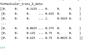 scaler = MinMaxScaler() X_data = scaler.fit_transform(X_data) print('MinMaxScaler_trans_X_data:') print(X_data)