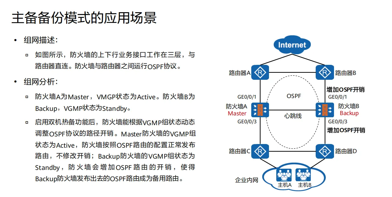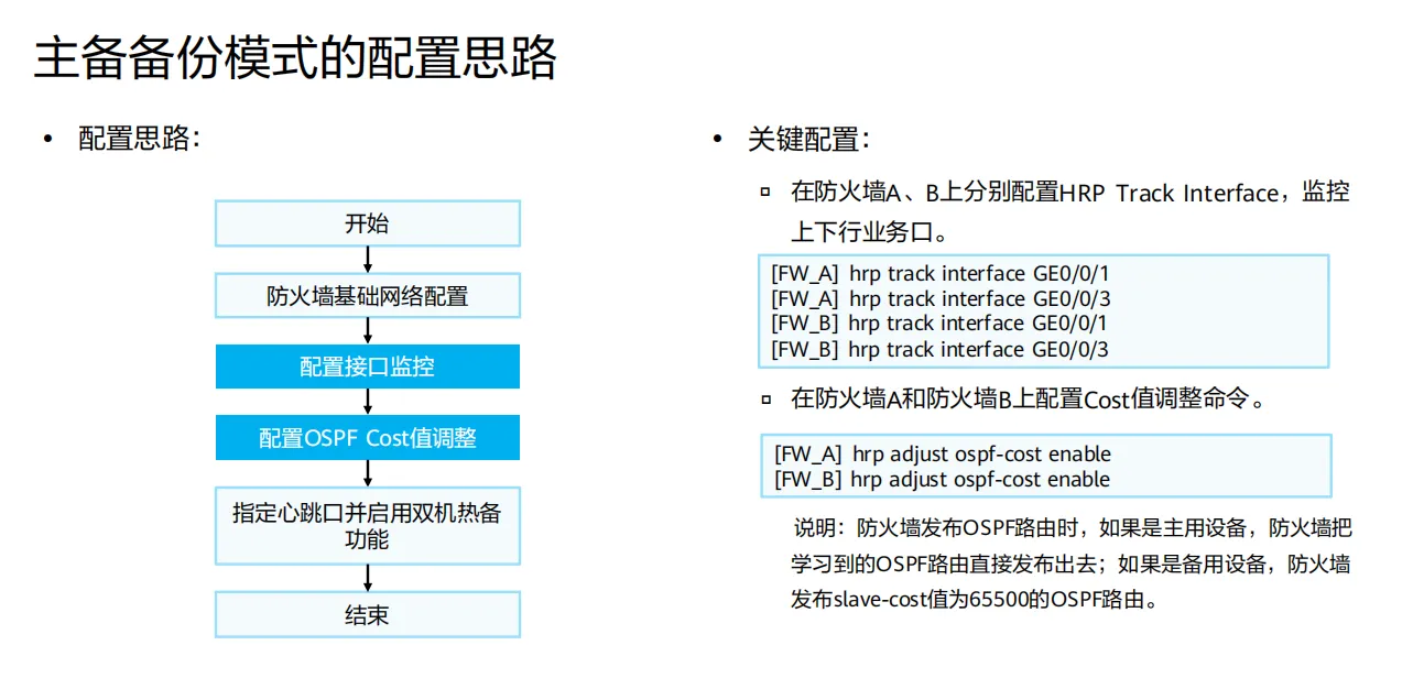 hrpadjustenable命令用来启动路由开销调整功能,防火墙会根据主备状态动态调整OSPF等路由协议的开销。