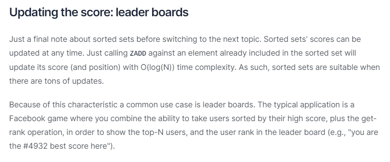 1、排行榜,通过zadd添加和修改score,时间复杂度是O(log(N))。