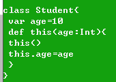 3、主构造函数可以使用默认参数class Student(age:String=20) 这里age未使用var或val修饰,所以会被默认为private[this],不会自动生成getset