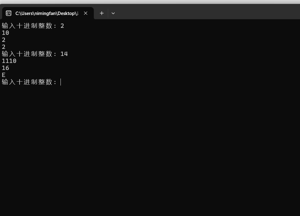 while(printf("输入十进制整数: "), scanf("%d", &x) != EOF) {