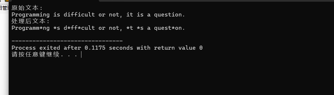 printf("处理后文本: \n");