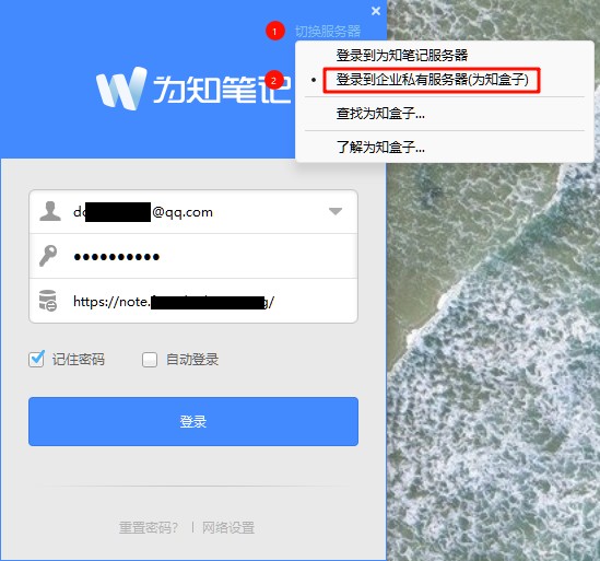切换服务器登录到企业私有服务器