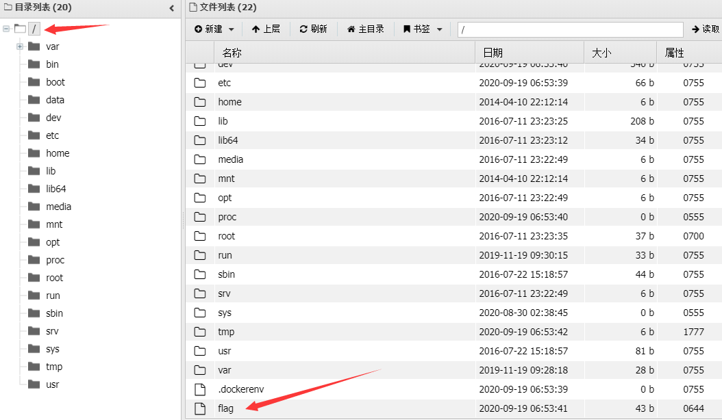 不过很幸运,根目录就看到了flag文件,直接双击访问