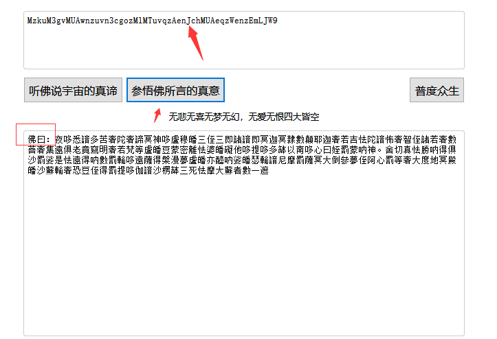 如来十三掌,这个名字略显可疑。下载完附件。很迷的东西。根据如来二字,玄学做题呗就。刚巧上次比赛做ctf解密题的时候找到了个与佛论禅的网站,所以试试喽