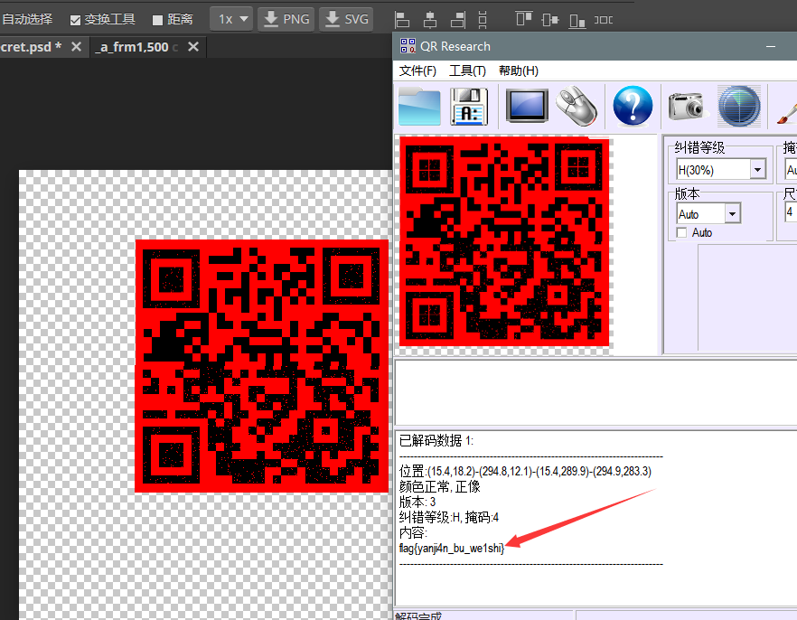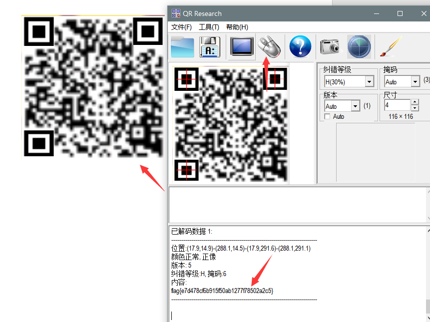 运行后,得到flag。或者可以直接去网上搜在线二维码转字符串工具,