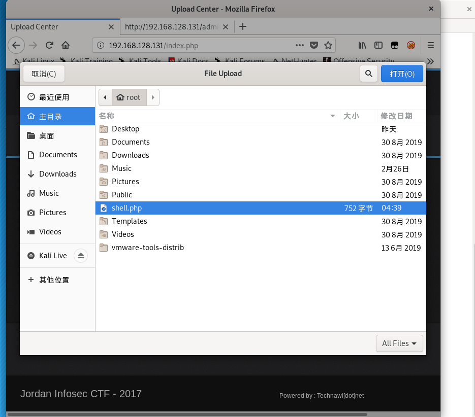 登录后,熟悉的上传页面,又是一个上传木马的好机会,不得不说kali是很友好的,连一句马都可以不用自己写,此时介绍weevely这个工具。