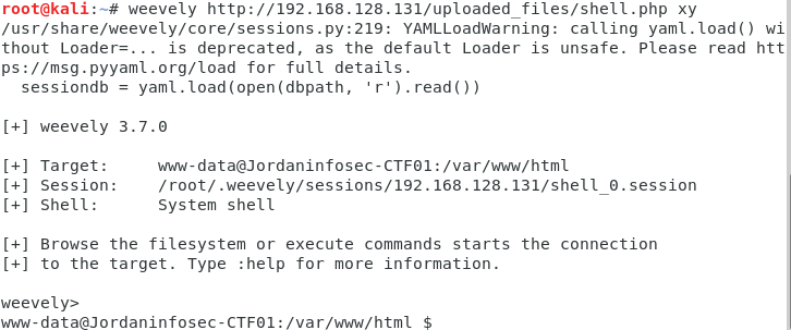 之后直接用weevely进行连接。要知道文件上传到哪了哈,就是最开始可疑的uploaded_files这个目录