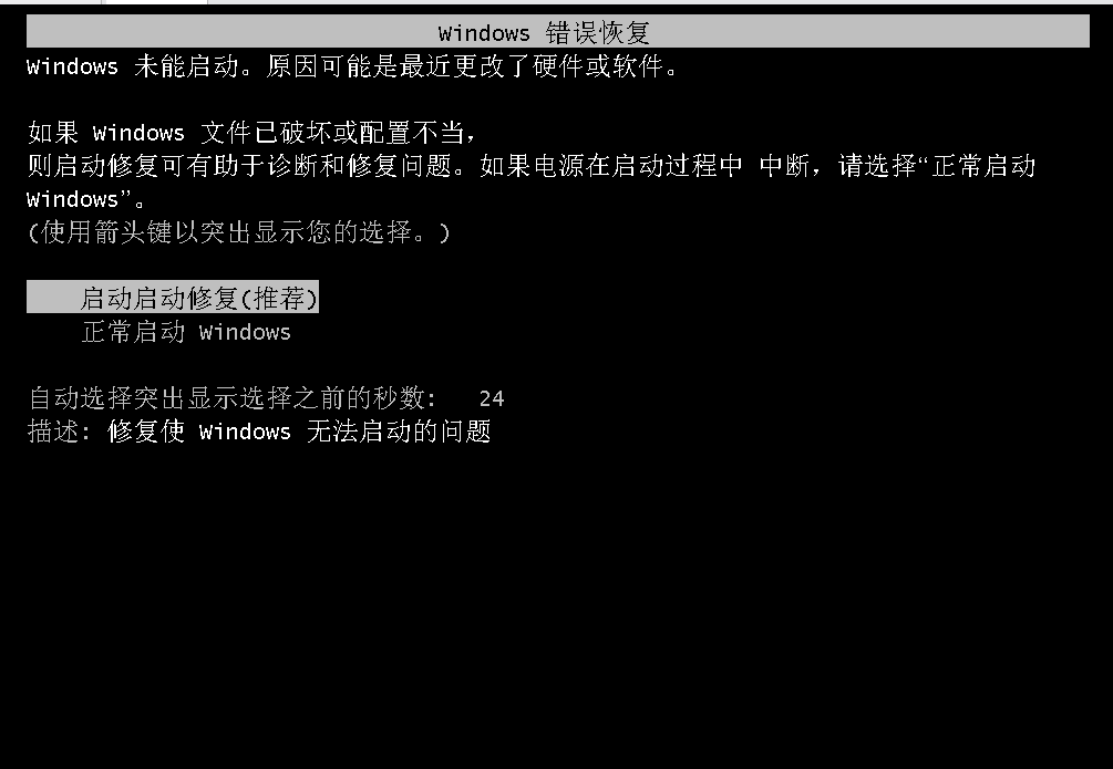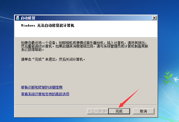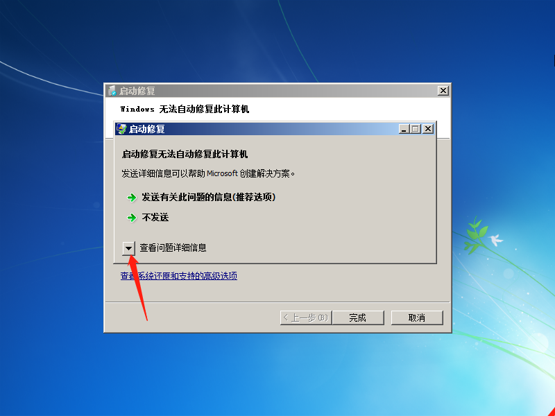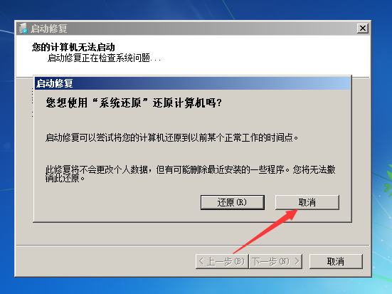 2.进入启动启动修复,让他修呗(反正他也找不到问题)