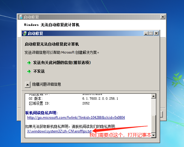 点开之后下滑,有两个链接,第一个是微软官方文档,已经错误代码,当然没兴趣读,第二个,就是可以打开本地的一个记事本啦。